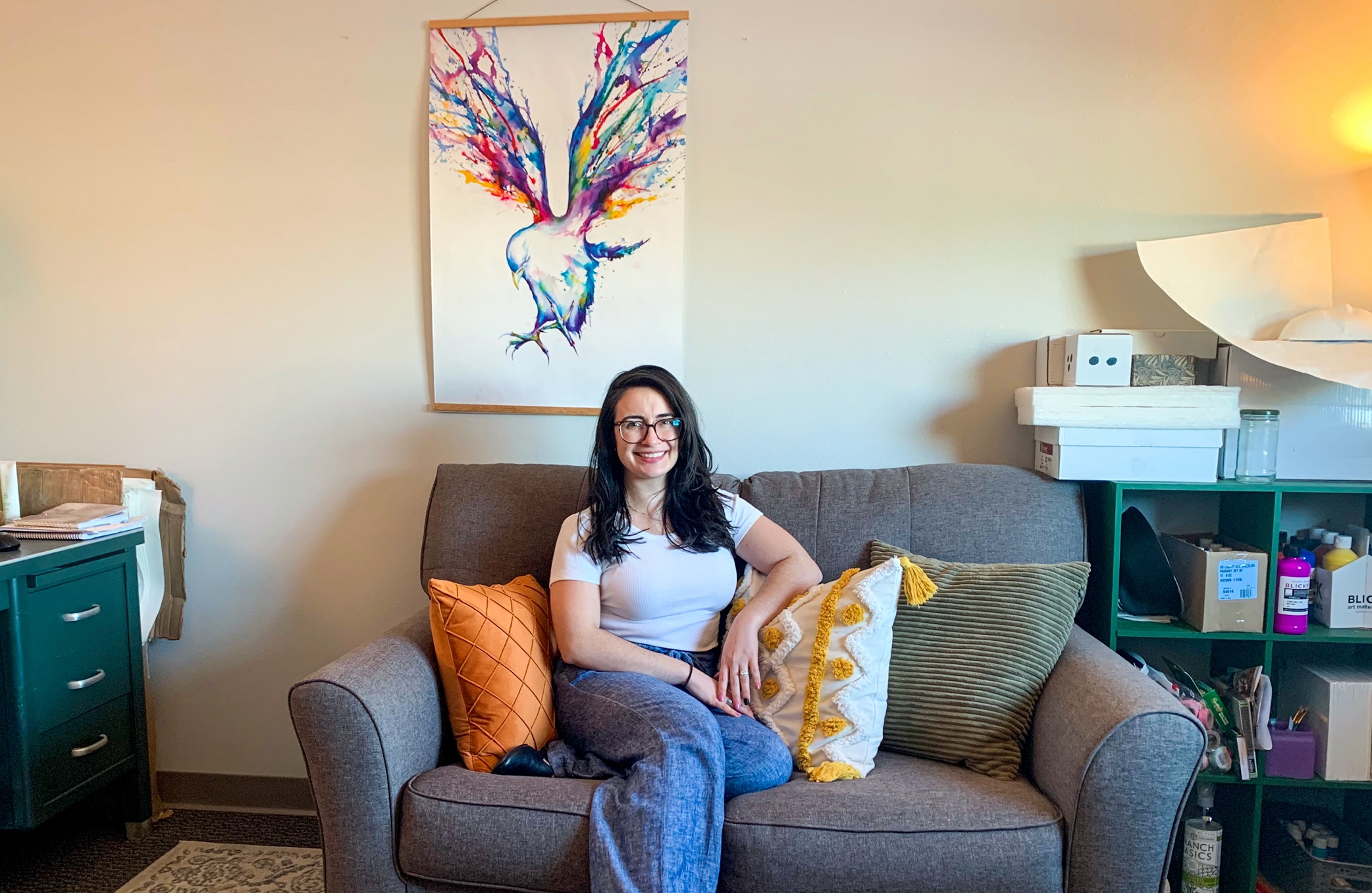 Danielle is an art therapist with The Village Family Service Center. Her office at The Village’s Moorhead, Minn., location features the traditional couch and chairs of any counseling office, as well as shelves lined with fine art and craft supplies.