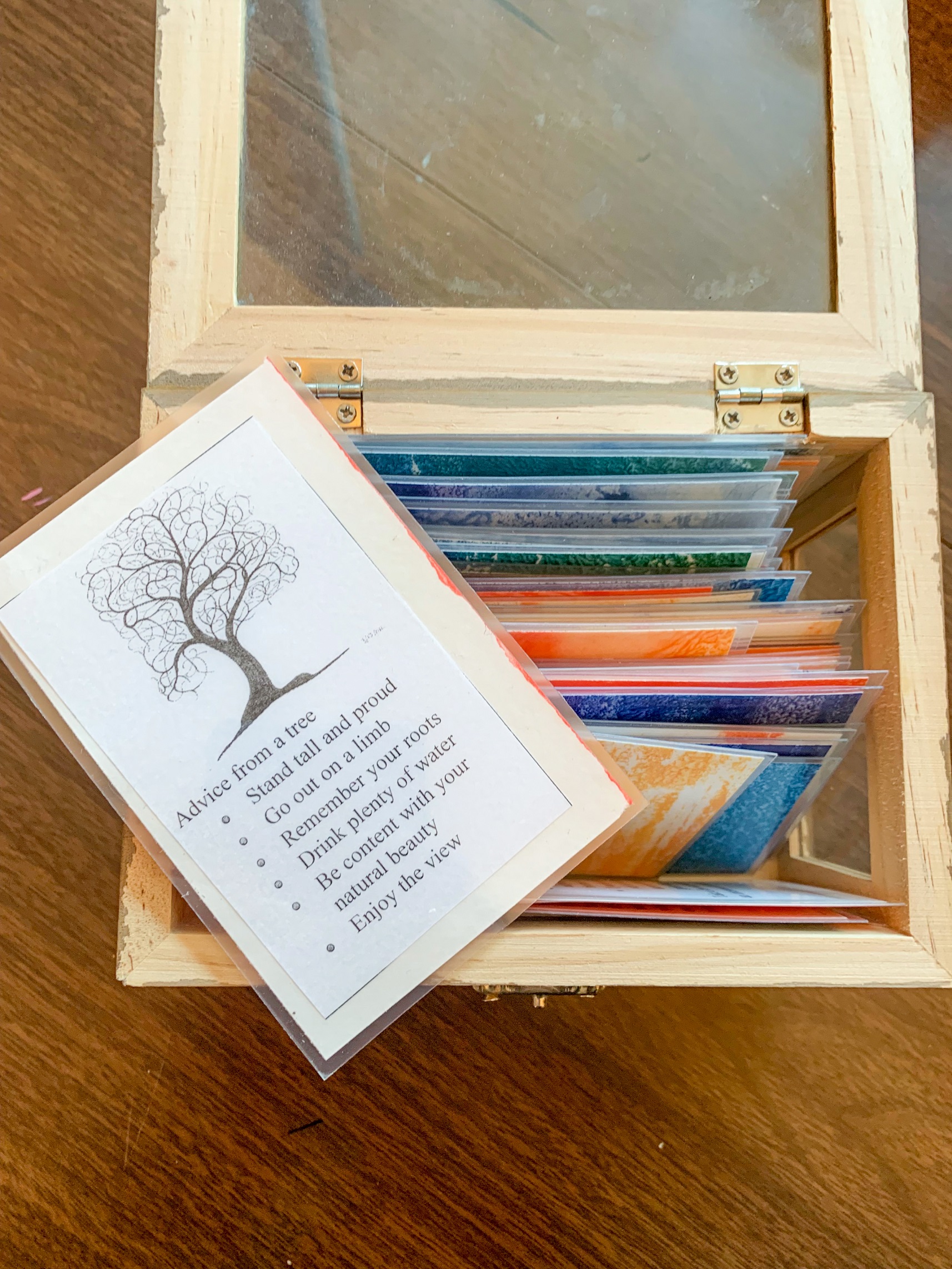 Clients might make a collage, tearing photos out of the discarded books Danielle collects, or they could create a deck of cards, each one featuring a different coping skill.